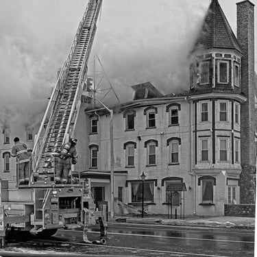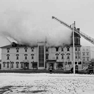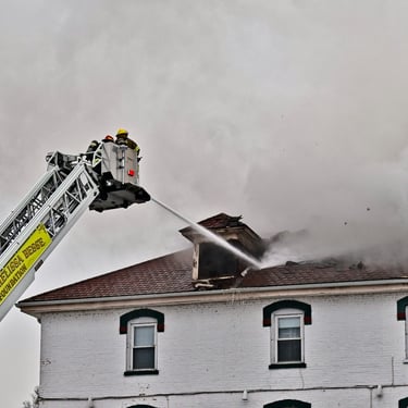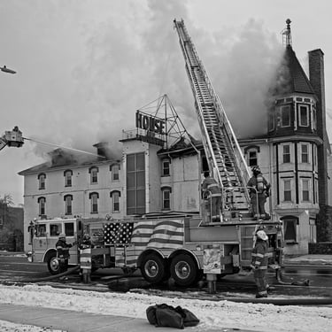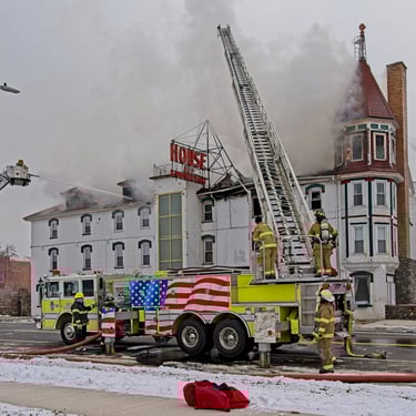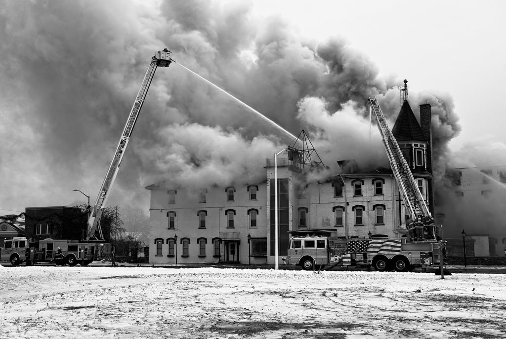 Smoke engulfs the House of Ludington as fire fighters work to save the building